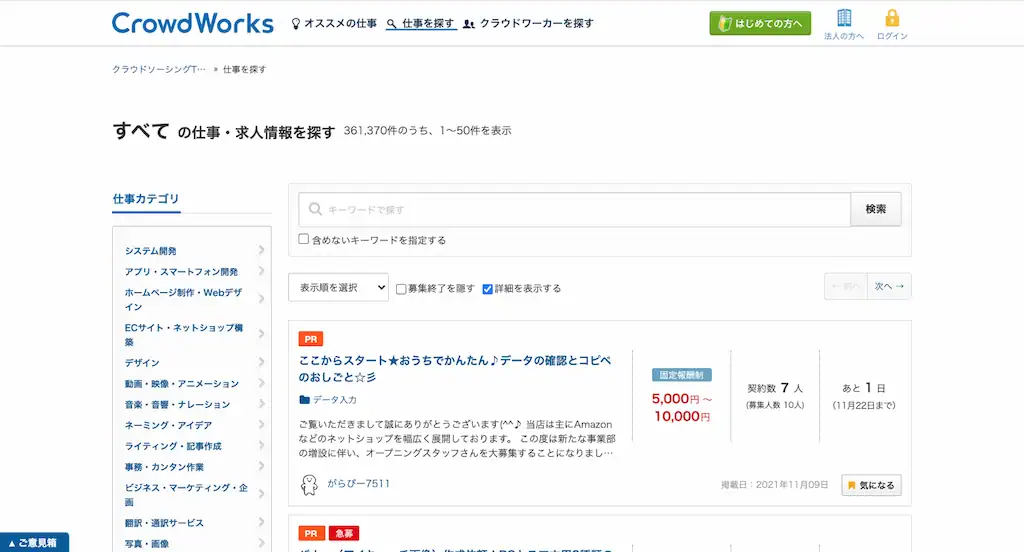 案件は、クラウドソーシングサイトから探していきましょう。具体的な案件の取り方は、記事の後半で解説します。
