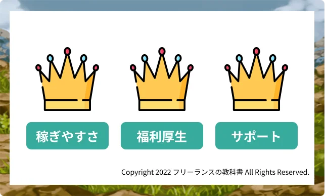 サポートの質も悪くはなく、稼ぎやすく(高額案件が多く)、福利厚生も充実。