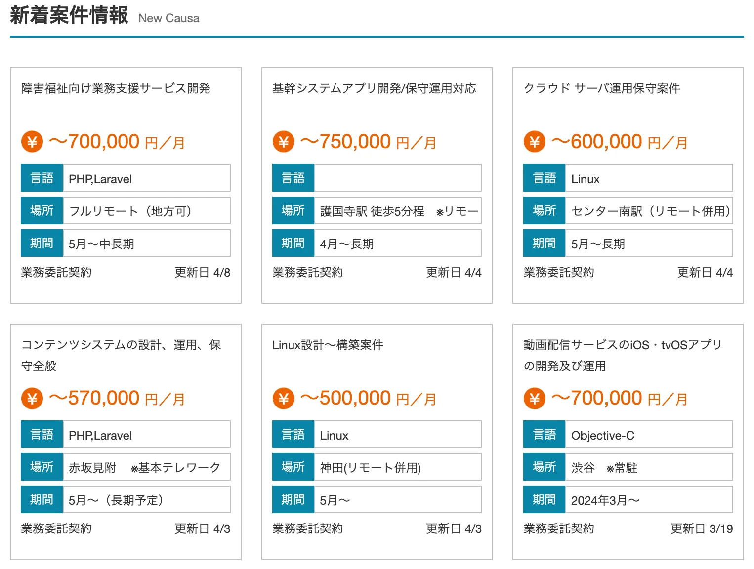 また、エンド直請け案件が多いため、コミュニケーションコストもそれほどかからず、紹介から契約までがスムーズに進むのも嬉しいところです