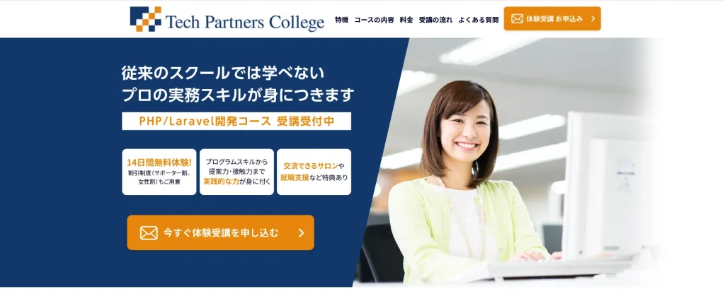 実践的なことまでしっかりと学びたい人は「Tech Partners College(テックパートナーズカレッジ)」