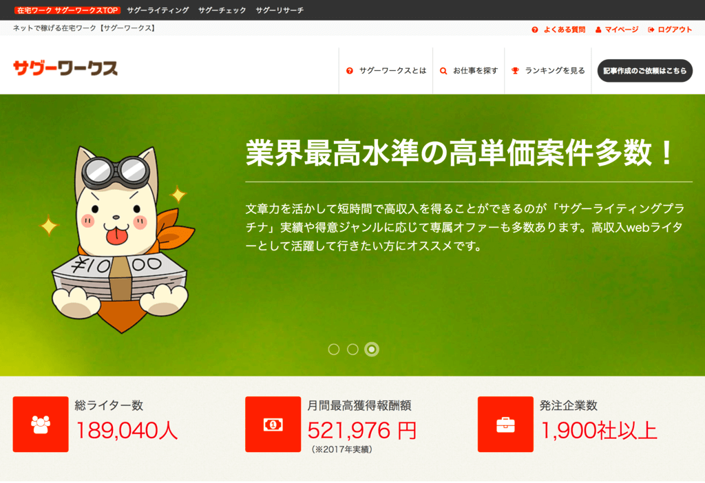 - ※サービス終了)登録初期の辛い時期を乗り越えれば稼げる【サグーワークス】