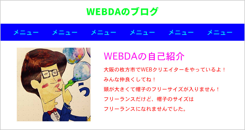 これもよくある初心者のころにやってしまうミスです。先ほどのサンプルの画像でも「黄緑、赤、青、水色、ピンク、白」実にカラフルな色を使いまくっています。