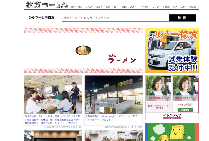 枚方市のローカルネタをもとに、地元の人にしかわからないようなマニアックな情報などいろいろな記事が日々投稿されています。